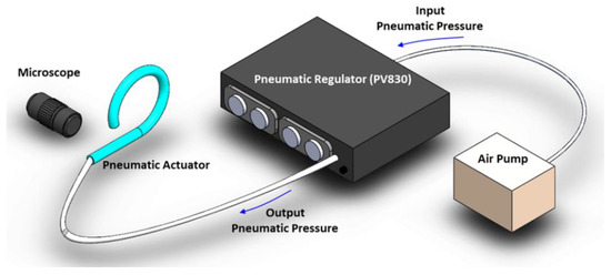 The past decade has seen the rapid rise of soft material-based robots as a new paradigm in robotics [1,2,3,4,5,6,7]. Such “soft robots” are deemed especially useful for biomedicine [8,9] due to their inherent softness, deformability [10,11], and resulting ability to safely manipulate delicate, fragile objects. Of special interest are those based on pneumatic actuation [12,13,14,15,16,17], since other soft robots utilizing heat [18], electromagnetic fields [19], or light [20,21,22,23] for their actuation often entail safety issues associated with high-level voltages [5], electric fields [4], or ultra-violet (UV) light [22]. Regarding the pneumatic soft actuator, the most recent research emphasis has been on its miniaturization for intra-body applications [3]. Balloon-finned micro-fingers [12], the nanofiber-reinforced pneumatic actuator [14], and the magnetically assisted bilayer bending actuator [15] are good examples. However, such small, soft, and safe (S3) actuators are difficult to design, optimize, and fabricate, due to their continuum natures and small dimensions.