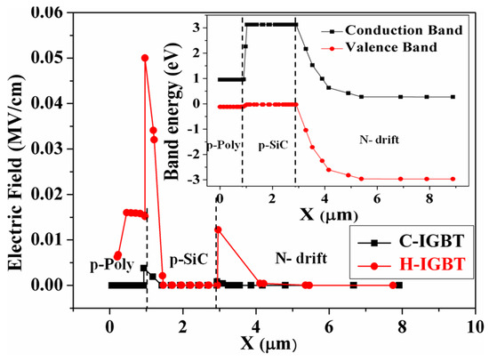 - Zhang, Q.; Wang, J.; Jonas, C.; Callanan, R.; Sumakeris, J.J.; Ryu, S.H.; Das, M.; Agarwal, A.; Palmour, J.; Huang, A.Q. Design and Characterization of High-Voltage 4H-SiC p-IGBTs. IEEE Trans. Electron Device. 2008, 55, 1912–1919. [Google Scholar] [CrossRef]