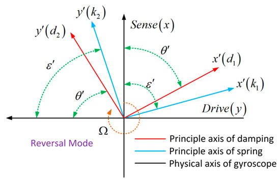 When the gyroscope in the reverse operation mode, the drive resonator and sense resonator are switched. The location of principal axes of drive and sense mode remains the same, and the coordinates of physical axes rotate 90 which means that and , as shown in Figure 2.