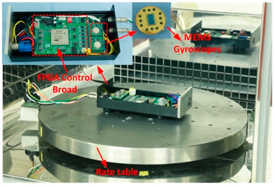 The two packaged gyroscopes with identical scale factors were arranged on two, identical four-layer print circuit boards (PCB), and the rest of electronic components were mounted on a 100 80 mm, six-layer PCB, as shown in Figure 7.