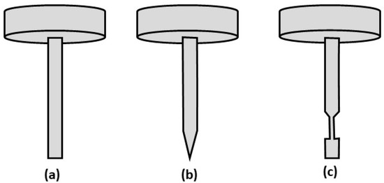 Shape of the microrods with (a) straight (b) conical and (c) grooved end.