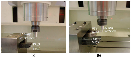 Micromachining tests were conducted with a micromachining center (Mikrotools DT-110, Mikrotools Pte. Ltd., Singapore), shown in Figure 9, developed for micromachining with movements in three directions. The optical linear scale for each axes X, Y, and Z, has 0.1 µm resolution with closed-loop feedback control.