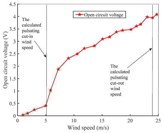 Equation (17) can be solved by mathematics software, and the cut-in wind speed of the piezoelectric energy harvester obtained here was 5.29 m/s.