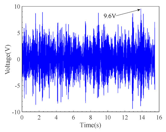 Figure 11 shows the relationship of the output voltage with time at a wind speed of 22 m/s when the resistance was 60 kΩ.