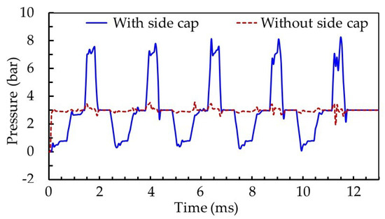 Pressure variation in the cavity of the models with and without side caps by simulations.