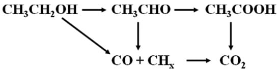 15]. The acetaldehyde, acetic acid (incomplete oxidation) and carbon dioxide (complete oxidation) are the products of electrooxidation of ethanol [