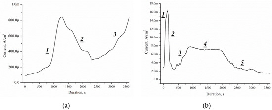 27]. The increase in the surface area leads to the growth of the current density, the first region.