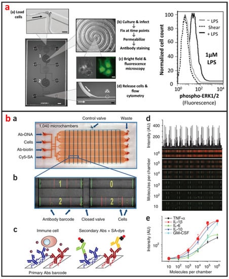- Yu, J.; Zhou, J.; Sutherland, A.; Wei, W.; Shin, Y.S.; Xue, M.; Heath, J.R. Microfluidics-Based Single-Cell Functional Proteomics for Fundamental and Applied Biomedical Applications. Annu. Rev. Anal. Chem. 2014, 7, 275–295. [Google Scholar] [CrossRef]