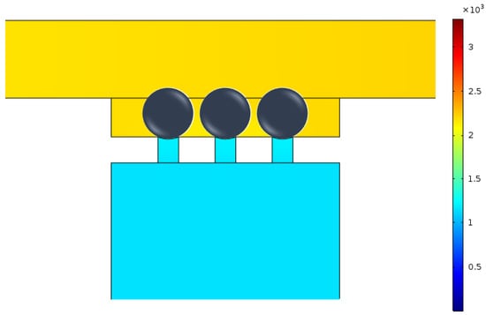 Micropipette aspiration relies on the suction pressure exerted on a single cell to study its biomechanical properties. Firstly, the pressure difference exerted on trapped cells was investigated both analytically and numerically. When single cells were trapped by the micropipette aspiration channels (), it showed a uniform pressure field at both ends of the micropipette aspiration channels (see Figure 4). When N (, or 3) micropipette aspiration channels were open, the pressure decreased linearly along the centerline of the open micropipette aspiration channel, in which the pressure difference between its two ends was measured at different flow rates . The results were compared with analytical ones calculated with Equation (5). The pressure difference was linearly proportional to the volume flow rate (Figure 5). These two results showed a discrepancy of at a maximum flow rate ( L/h), revealing that Equation (5) is reliable for the calculation of the pressure difference across the micropipette aspiration channel.