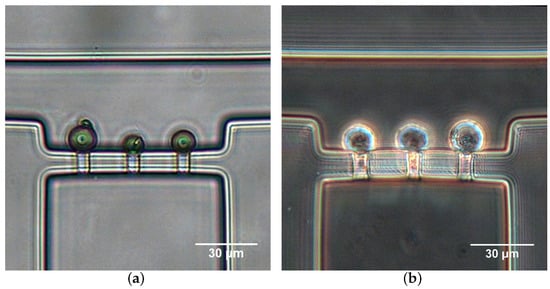 Figure 8 shows a demonstration of Hela cells aspirated into the micropipette aspiration channels. To the same applied suction pressures, cells presented different changes in shape, revealing the heterogeneous mechanical properties of cell populations (Figure 8). Additionally, the cell deformation mainly included two forms. In one case, cells showed hemispherical projections into the MPA channels (Figure 8a). In another case, cell membranes extended completely into or even passed through the MPA channels. The two cases respectively demonstrate the solid-like and liquid-like behaviors of cells.