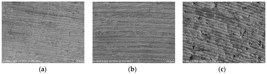 The machined surface morphology (ap = 4 μm). (a) fz = 0.3 μm; (b) fz = 1.5 μm; (c) fz = 2.7 μm
