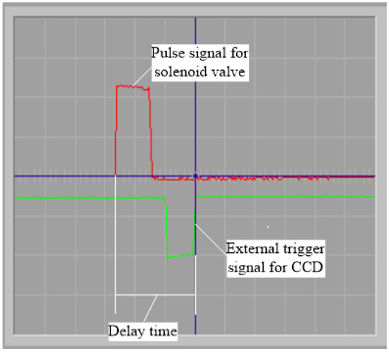 Pulse signal for solenoid valve and external trigger signal for charge-coupled device (CCD).