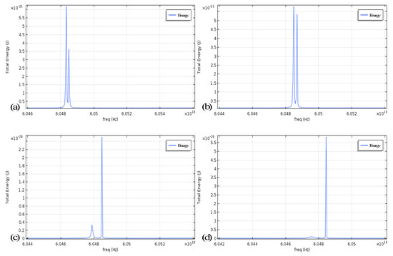 It is observed that the influence of Kerr noise on the system of angular-rate sensing based on mode splitting is owing to three factors: the angular rate of the microresonator, the light power distribution in the CW and CCW modes and the size of the cavity. The input laser power introduced for the evanescent field coupling to the left port of the fiber taper is usually fixed at one of the several commonly used values. It is not surprising that when we change the position and size of a particle relative to the cavity, the simulation result indicates that the power distribution of CW and CCW modes is greatly affected by scattering, as shown in Figure 2. Meanwhile, the size of the cavity also indirectly affects the effective cross-sectional area of the light concentration causing a slight change.