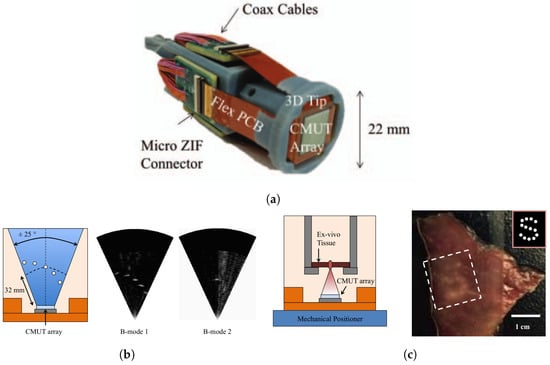 - Gurun, G.; Tekes, C.; Zahorian, J.; Xu, T.; Satir, S.; Karaman, M.; Hasler, J.; Degertekin, F.L. Single-Chip CMUT-on-CMOS Front-End System for Real-Time Volumetric IVUS and ICE Imaging. IEEE Trans. Ultrason. Ferroelectr. Freq. Control 2014, 61, 239–250. [Google Scholar] [CrossRef] [PubMed]