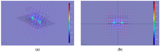 Furthermore, a finite element simulation based on a solid model and a numerical simulation are implemented to analyze the magnetic field characteristics of the entire accelerometer. The physical structure is constructed using Comsol software according to the parameters shown in Table 1. The finite element simulation of magnetic field distribution for permanent magnetic film is shown in Figure 5.