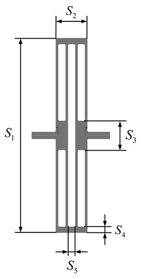 Next, the width of the stress-released structure (S2) was analyzed. S2 ranges from 80 μm to 270 μm. The operating frequency variation decreases as S2 increases (Figure 7a). As S2 increases, the frequency mismatch variation becomes larger and more stable (Figure 7b). In addition, S2 has great influence on the width size of the BFVG, which needs to be considered comprehensively.