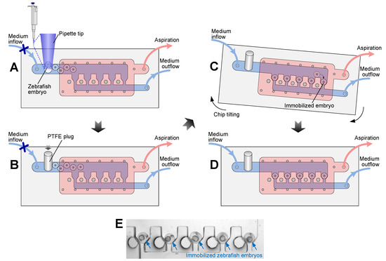 - Akagi, J.; Khoshmanesh, K.; Evans, B.; Hall, C.J.; Crosier, K.E.; Cooper, J.M.; Crosier, P.S.; Wlodkowic, D. Miniaturized embryo array for automated trapping, immobilization and microperfusion of zebrafish embryos. PLoS ONE 2012, 7, e36630. [Google Scholar] [CrossRef] [PubMed]