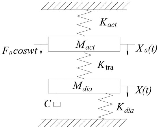 The piezoelectric resonance pump uses system resonance to amplify the amplitude of the piezoelectric vibrator and drive the pump chamber diaphragm to improve the volume change of the pump chamber and optimize the pump’s output performance. The dynamic model of the vibration system is established in this section to study the influence of system parameters on the natural frequency and amplitude amplification coefficient.