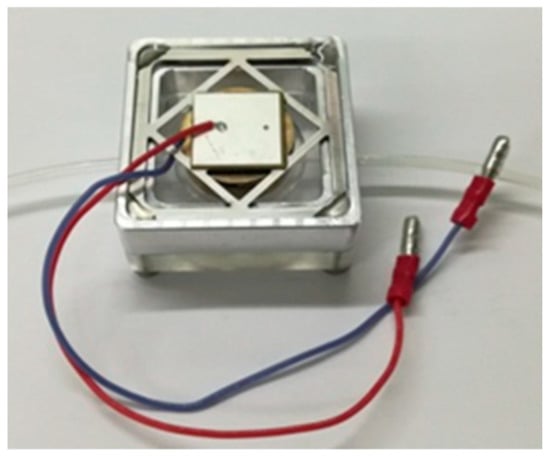 11]. In 2014, for the precise transportation of chemical fuel cells, the University of Science and Technology of China developed a piezoelectric resonance pump with a flexible fluid buffer cavity at the outlet and inlet of the pump chamber. The pump used the rectangular piezoelectric vibrator with free ends as its driving device [