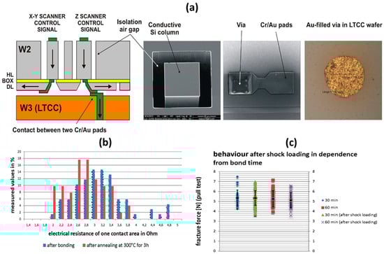 - Wiemer, M.; Frömel, J.; Jia, C.; Bargiel, S.; Baranski, M.; Passilly, N.; Gorecki, C. Bonding and contacting of vertically integrated 3-D microscanners. In Proceedings of the 9th Annual International Wafer-Level Packaging Conference, San Jose, CA, USA, 5–8 November 2012; p. 5. [Google Scholar]