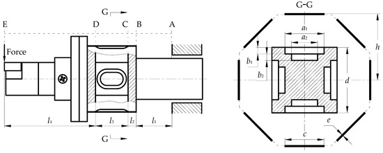 where K1–K3 are the strain sensitivity coefficients of the dynamometer. The relationship with the structural parameters of the dynamometer is shown in Equation (25). Equation (24) demonstrates that the output signal of the measurement system will be affected after the cutter head is replaced in the dynamometer. Therefore, the parameters of the system measurement mechanism need to be reset each time the cutter head is replaced in order to ensure the reliability of the system output.