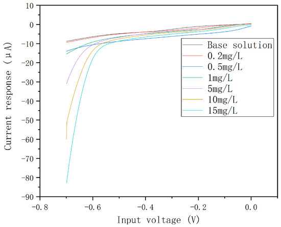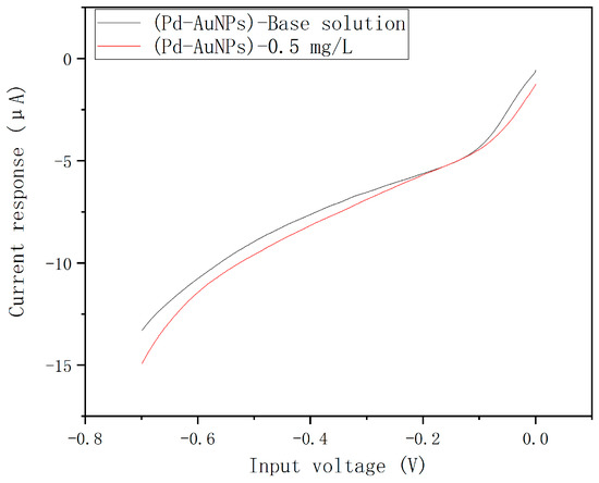 Linear sweep voltammetry was used for the current response characteristic test of the Pd-AuNPs to nitrate. The linear sweep voltammetry plots are shown in Figure 6.