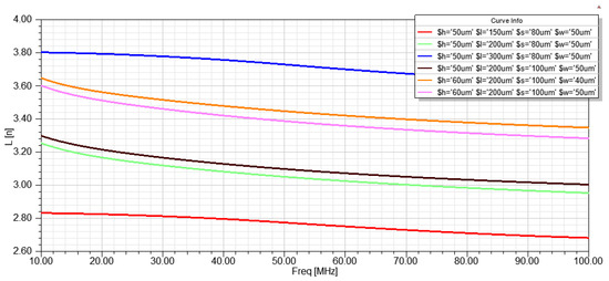 The influence of the geometric parameters of the microstructure coil on the inductance value. It can be seen from the results that the inductance value of the micro-coil is positively correlated with the length l of the coil wire and is negatively correlated with the space s of each turn of the coil.