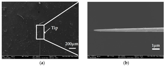 3.4. SEM Images Characterization of the Ag Needle Nanoelectrodes