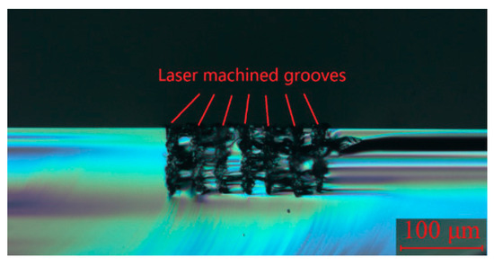 The optical microscopic images of the cross-sectional profiles of the laser-ablated grooves are shown in Figure 11. The red line shows the design lenticular lens profile. The experimental results agreed well with the design profiles.