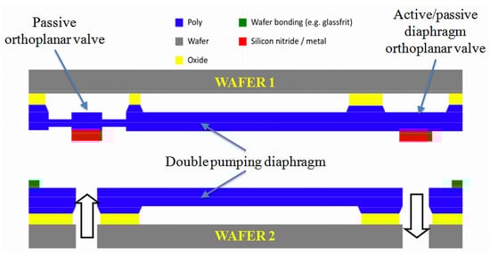 Pumps are devices that provide momentum to transfer fluids and can be integrated in Micro Electromechanical Systems (MEMS) to develop so-called micro-fluidic systems []. As an example, micropumps play an important role in biomedical and drug delivery systems: The micro-dosing feature in such devices has improved the effectiveness of the treatment because the concentration of the drug in the patient’s body has been kept constant as well as because toxicity has been prevented [].
