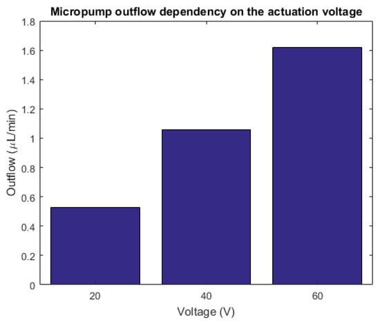 Figure 7 represents the outflow of the designed micropump for different actuation voltages at the working frequency of 10 Hz.