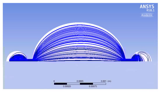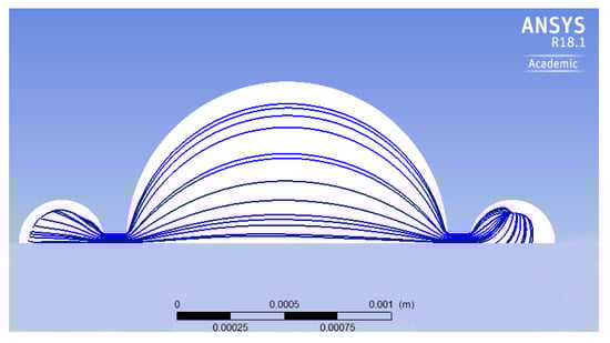 Figure 12 shows the streamlines for the elliptical chamber: By a comparison with the circular one, it is easily realized that the dead zone is reduced. The obtained outflow of this optimized micropump is 2.11 μL , which indicates that the outflow increases 30%, with the same actuation system and expended power.