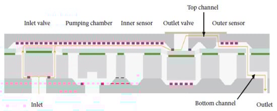 The cross-sectional scheme of the micropump proposed in Reference [] (Reproduced under Creative Commons Attribution License).