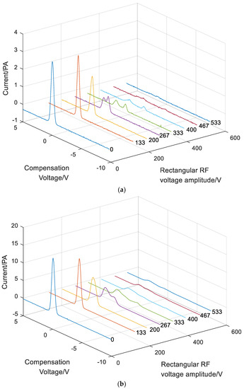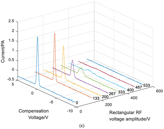 According to the parameters in Table 2, the FAIMS experiment was successful. The RF voltage increased from 0 V to 400 V, while the compensation voltage was swept from +5 V to −10 V with the step size of 0.1 V.
