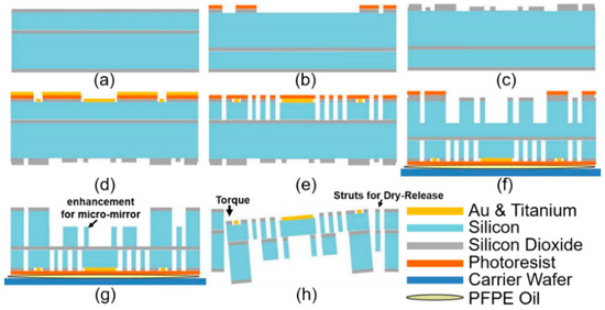 2.2. Microfabrication of the 2D Au-Coated Resonant MEMS Scanner
