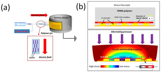 - Jiang, Y.; Gong, L.; Hu, X.; Zhao, Y.; Chen, H.; Feng, L.; Zhang, D. Aligned P(VDF-TrFE) Nanofibers for Enhanced Piezoelectric Directional Strain Sensing. Polymers 2018, 10, 364. [Google Scholar] [CrossRef]