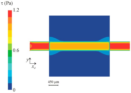 Nominal wall shear stress, used to distinguish the experiments, was calculated through the analytical Equation (6). The real wall shear stress, as given by the numerical simulation, is slightly different.