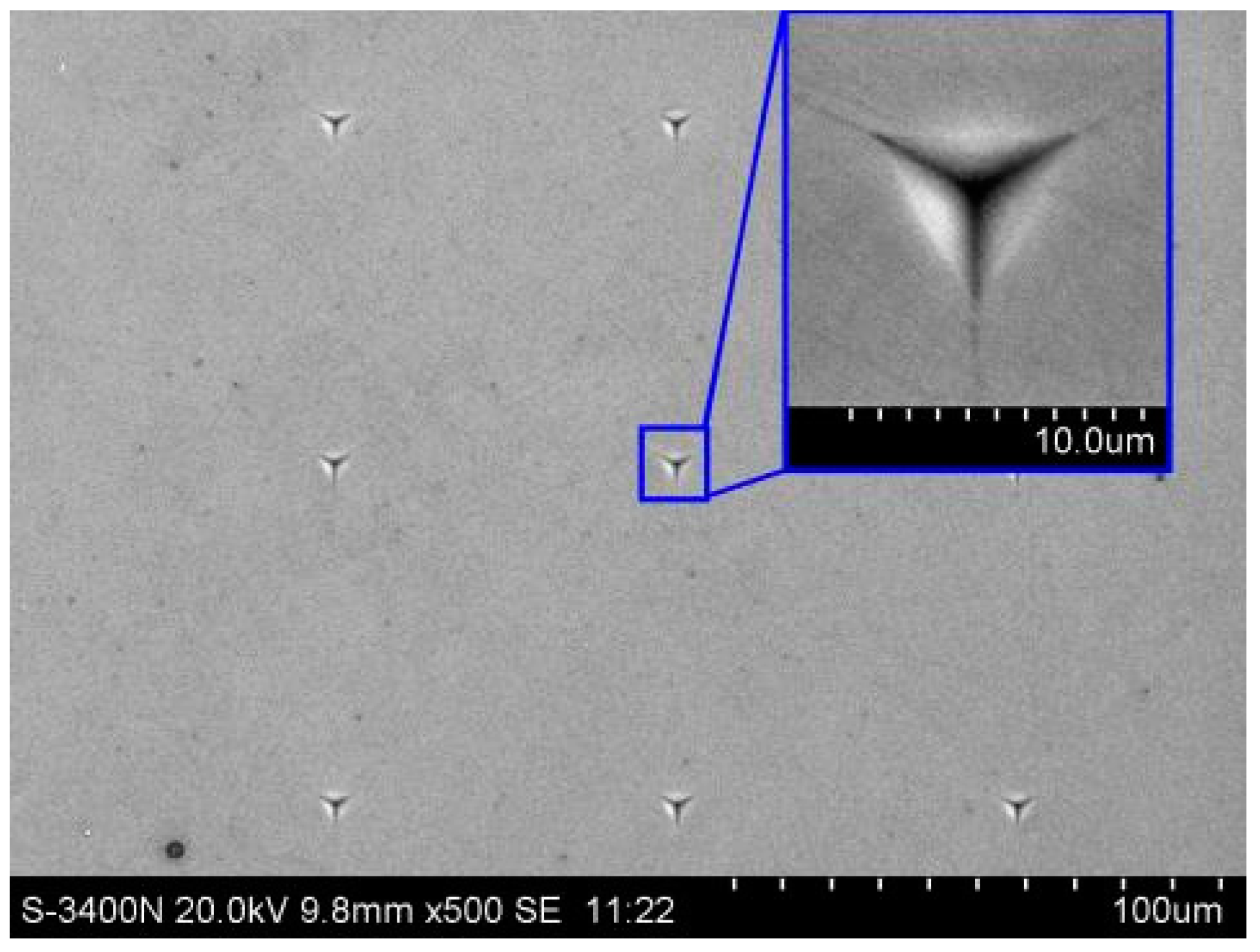 - Pang, K.H.; Tymicki, E.; Roy, A. Indentation in single-crystal 6H silicon carbide: Experimental investigations and finite element analysis. Int. J. Mech. Sci. 2018, 144, 858–864. [Google Scholar] [CrossRef]