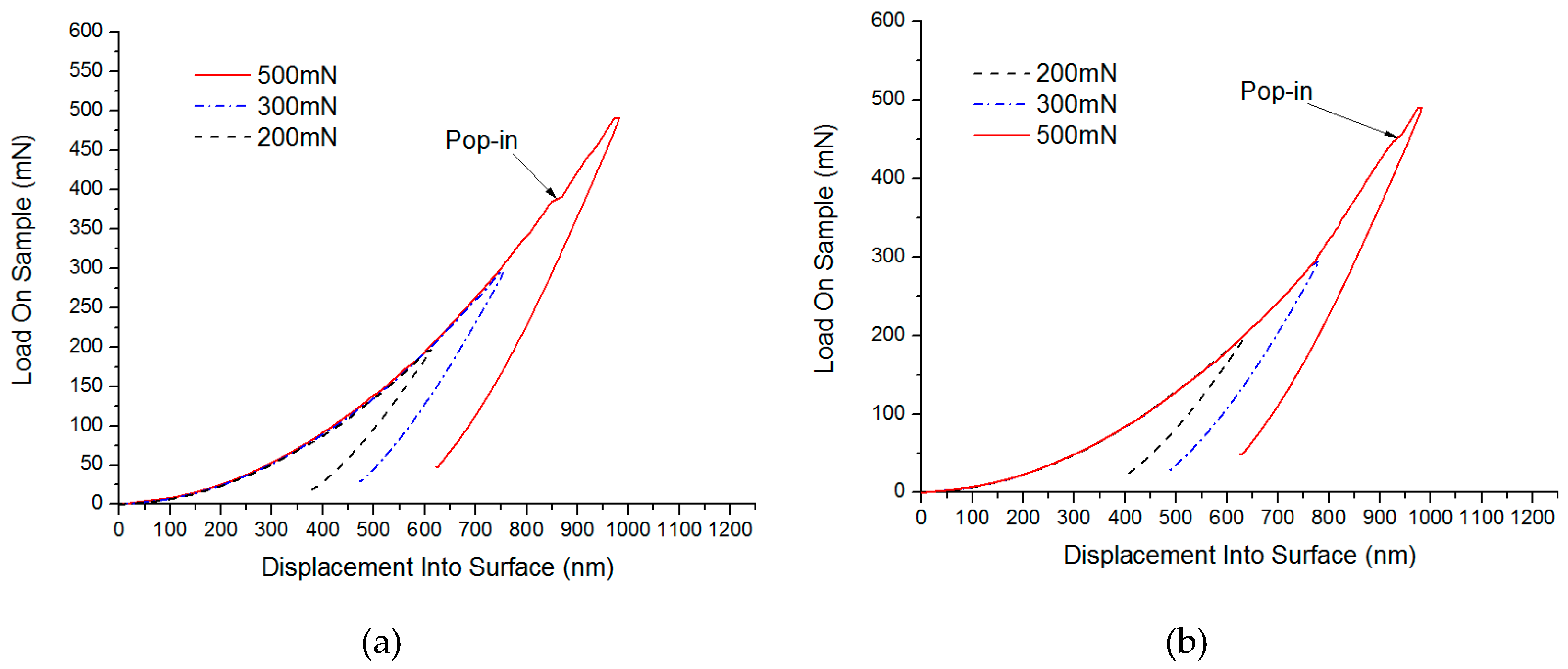 3.1. Results and Theoretical Analysis of this Nanoindentation Experiment