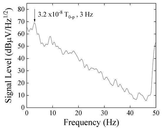 Result of spectrum measurement for a signal of 3.2 × 10−8 T0-P at 3 Hz.