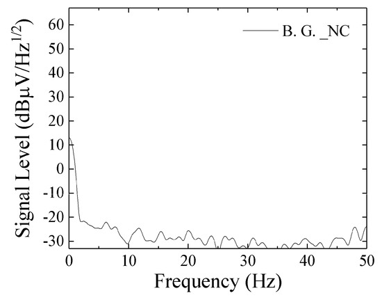 Figure 13 shows a measurement result. The horizontal-axis shows a frequency from DC to 50 Hz, the vertical-axis shows a signal level of output which is including alternating magnetic field, 3.2 × 10−8 T0-P (0.32 mG0-P) at 3 Hz. From this figure, the 3 Hz peak clearly sticks out above the noise level. In other words, the sensitivity of the sensor system achieves 3.2 × 10−8 T (0.32 mG).