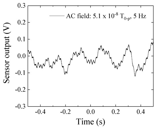 Measured signal when a 5.1 × 10−8 T0-P in 5 Hz was applied to the sensor element.