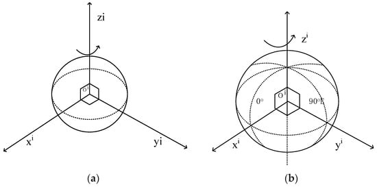 (a) Axes of the Earth-Centered Inertial Frame. This is nominally centered at the Earth’s center of mass and oriented with respect to the Earth’s spin axis and the stars. The rotation shown is that of the Earth with respect to space. The z-axis always points along the Earth’s axis of rotation from the center to the north pole (true, not magnetic); (b) Axes of the Earth-Centered Earth-fixed Frame. The z-axis always points along the Earth’s axis of rotation from the center to the North Pole (true, not magnetic). The x-axis points from the center to the intersection of the equator with the reference meridian (IRM) or conventional zero meridian (CZM), which defines 0° longitude.