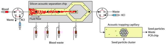 - Ohlsson, P.; Evander, M.; Petersson, K.; Mellhammar, L.; Lehmusvuori, A.; Karhunen, U.; Soikkeli, M.; Seppä, T.; Tuunainen, E.; Spangar, A. Integrated acoustic separation, enrichment, and microchip polymerase chain reaction detection of bacteria from blood for rapid sepsis diagnostics. Anal. Chem. 2016, 88, 9403–9411. [Google Scholar] [CrossRef] [PubMed]
