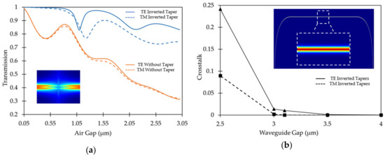 - Jones, A.M.; DeRose, C.T.; Lentine, A.L.; Trotter, D.C.; Starbuck, A.L.; Norwood, R.A. Ultra-low crosstalk, CMOS compatible waveguide crossings for densely integrated photonic interconnection networks. Opt. Express 2013, 21, 12002. [Google Scholar] [CrossRef]