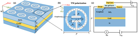 - Liu, L.; Chen, J.J.; Zhou, Z.G.; Yi, Z.; Ye, X. Tunable absorption enhancement in electric split-ring resonators-shaped graphene array. Mater. Res. Express 2018, 5, 045802. [Google Scholar] [CrossRef]