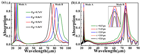 - Wang, J.C.; Yang, L.; Hu, Z.D.; He, W.J.; Zheng, G.G. Analysis of graphene-based multilayer comb-like absorption enhancement system based on multiple waveguide theory. IEEE Photonics Technol. Lett. 2019, 31, 561–564. [Google Scholar] [CrossRef]