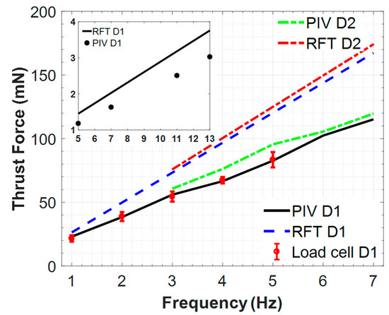 3.3. Thrust Force Measured from Volumetric PIV vs. Load Cell