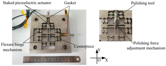 - Wang, G.; Zhou, X.; Ma, P.; Wang, R.; Meng, G.; Yang, X. A novel vibration assisted polishing device based on the flexural mechanism driven by the piezoelectric actuators. AIP Adv. 2018, 8, 015012. [Google Scholar] [CrossRef]