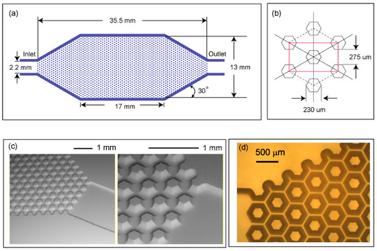 Figure 2b shows the dimensions of the repeating unit cell. A scanning electron microscope (SEM) image of the capillary bed is shown in